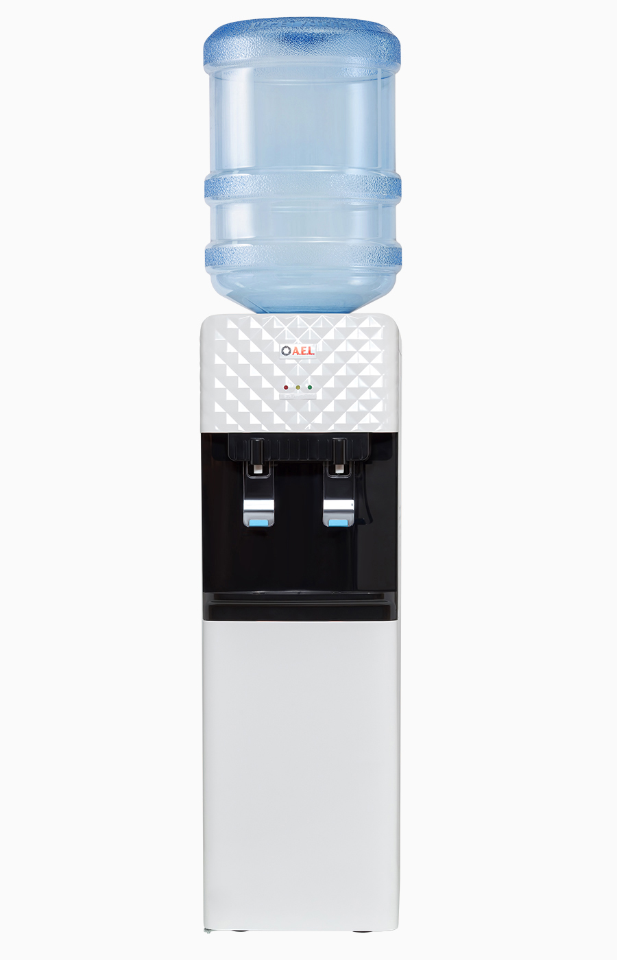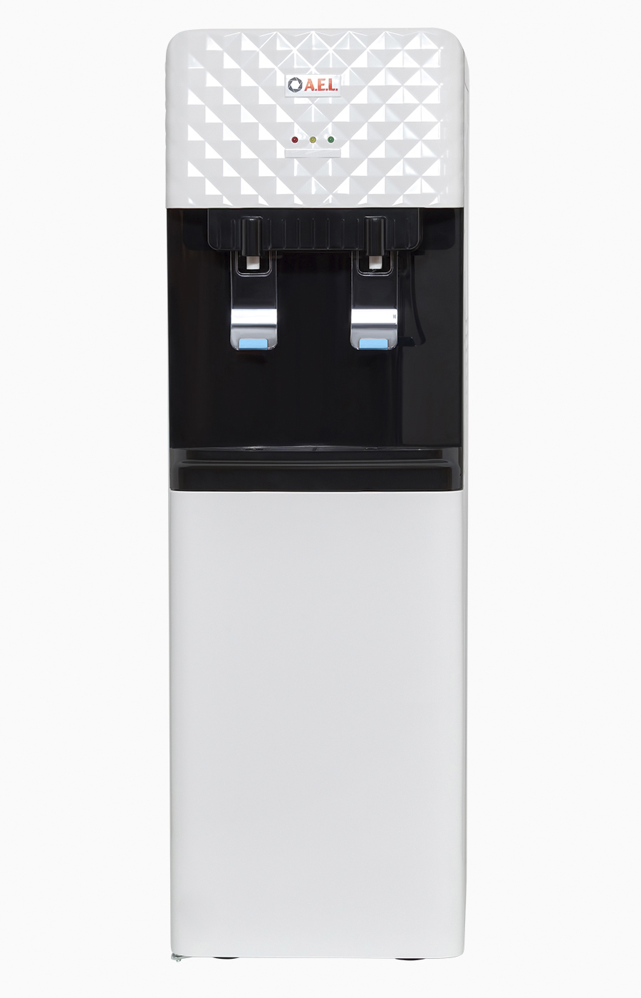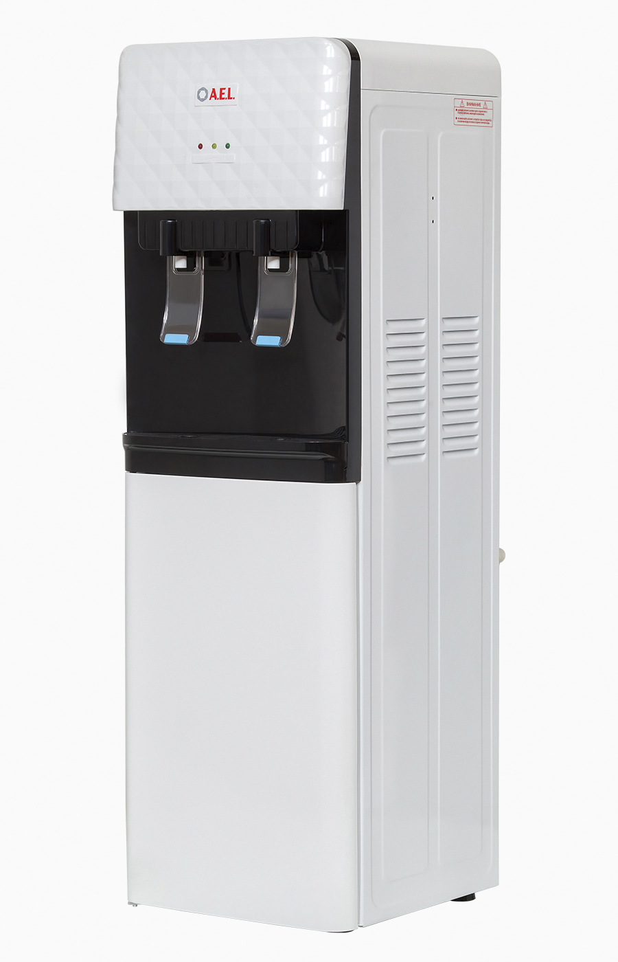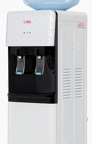 Кулер без нагрева и без охлаждения, напольного типа, для публичных мест с верхним размещением бутыли. Корпус изготовлен из пластика, боковые стенки из металла. Кулер подходит как для домашнего, так и для офисного использования, на предприятиях и учреждениях. Интересный дизайн на лицевой панели, удобные краны "нажим чашкой" и малые габариты этого аппарата эргономично впишутся в Ваш офис.