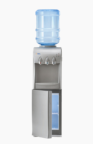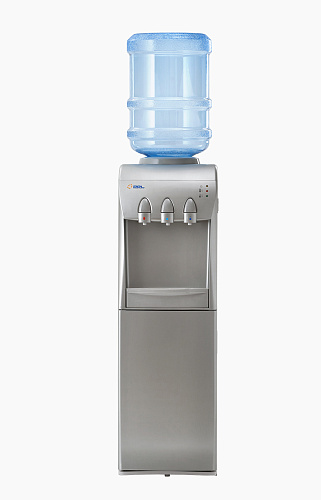 Кулер с холодильником на 20 литров (≅240х210х360 мм) с тремя краниками-клавишами (холодная/прохладная/горячая вода). Отлично вписывается в небольшое офисное пространство. Комфортной эксплуатации способствует возможность нажима рукой кнопки-клавиши.