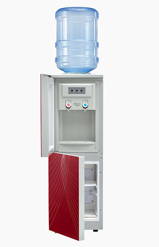 Выполнен в стильном корпусе белого цвета с декоративной вставкой "лебеди", что сделает его интересной деталью офисного помещения. Область краников-клавиш закрывает дверца. Клавиша для налива горячей воды оснащена защитой от случайного нажатия. Имеет холодильное отделение объемом 12 литров, которое позволит использовать кулер в кухонном помещении офиса.