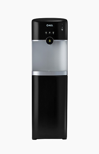 Новинка с нижней загрузкой бутыли с сенсорной панелью управления. Подача и выбор воды осуществляется путем легкого прикосновения на панель управления. Для того чтобы налить холодную воду в стакан необходимо сначала нажать сенсорную клавишу холодной воды, затем клавишу с каплей. При нажатии клавиша "капля" будет подсвечиваться. Для остановки потока холодной воды из крана нужно нажать сенсорную клавишу "капля" повторно. Нижняя загрузка бутыли. Цвет черный с серебряной вставкой. Три сенсора на передней панели (горячая/прохладная/холодная). Подсветка сенсорных клавиш при нажатии. В процессе эксплуатации аппарата в тот момент, когда вода в бутыли закончилась, на панели индикации загорится индикатор наличия воды в бутыли. Это символизирует о том, что необходимо заменить пустую бутыль.