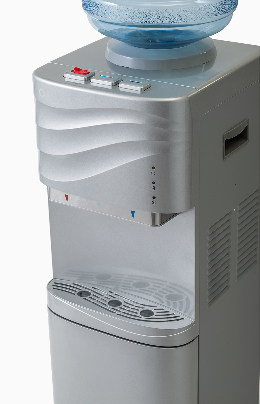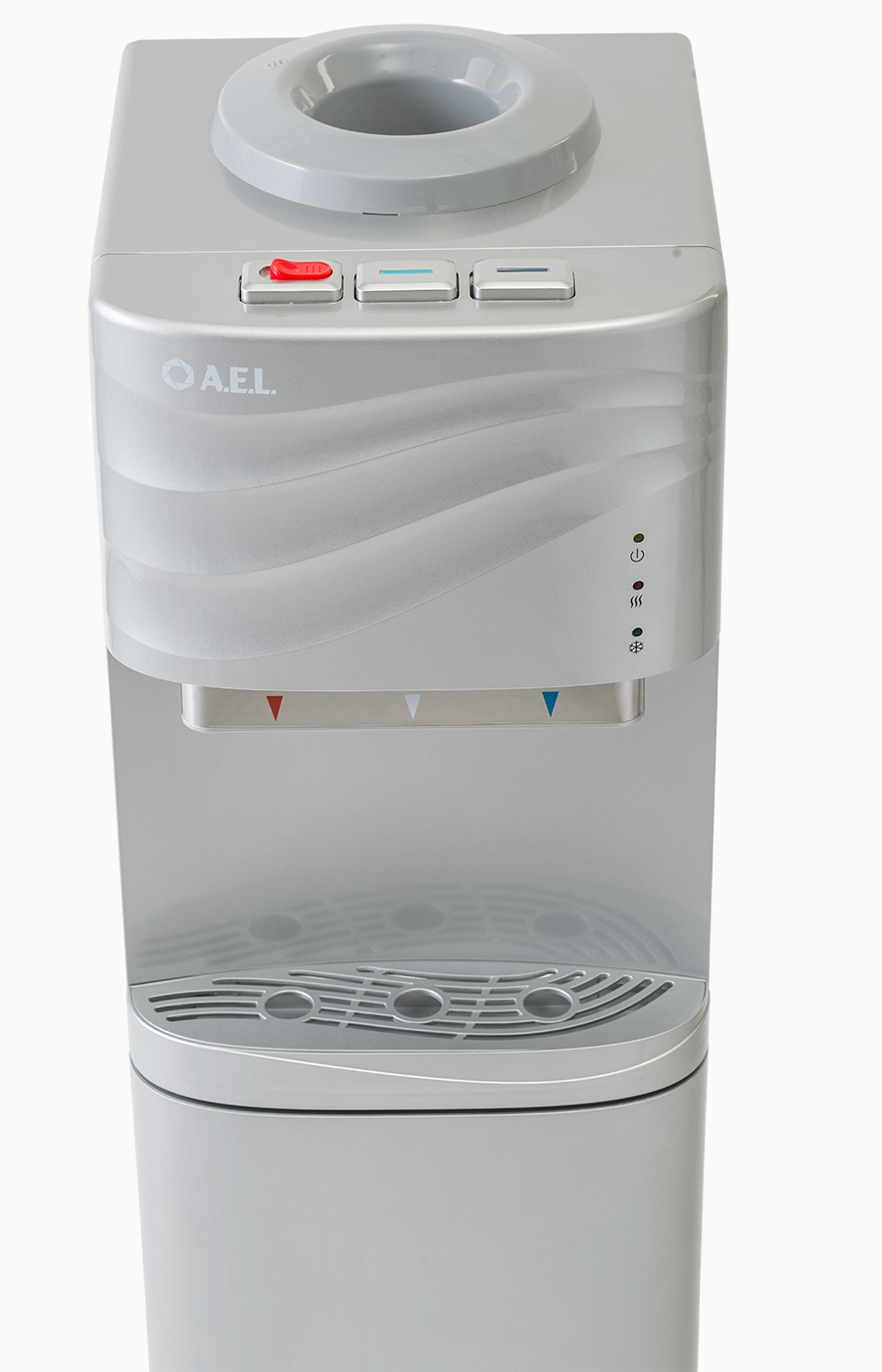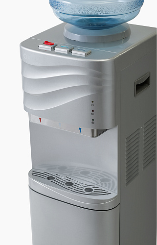 Новый кулер с верхней загрузкой бутыли серебряного цвета. Оригинальный дизайн с волной на лицевой панели выделяет этот кулер из всех аналогичных по техническим характеристикам. Пользователь может выбрать воду холодную, горячую или комнатной температуры, что позволит экономить электроэнергию. Предусмотрена удобная подставка для стаканов с небольшим резервуаром, где собирается случайно пролитая вода.