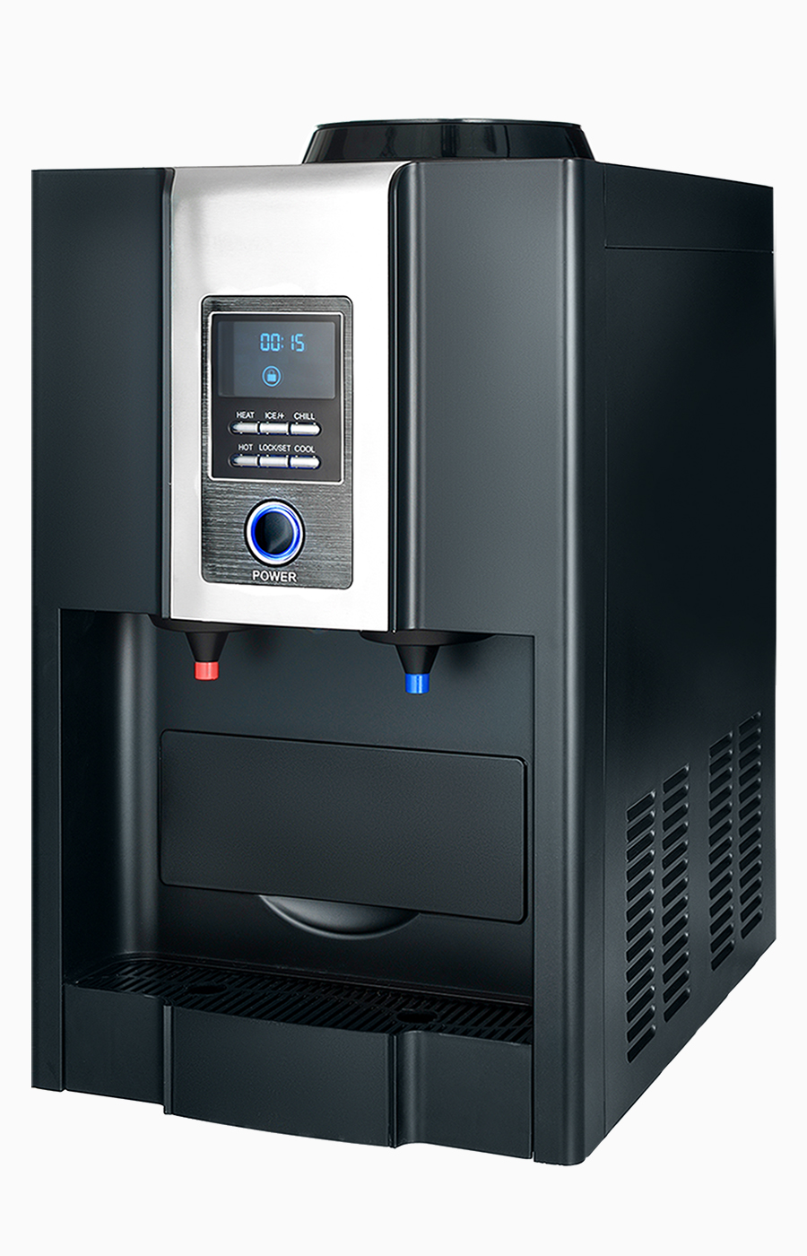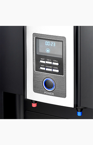 Кулер с функцией приготовления льда. ЛСД дисплей с таймером. Мгновенно готовит лед, нагревает и охлаждает воду. Компрессорное охлаждение. Индикатор отсека для льда. Индикатор наличия воды. Подходят 19л и 11л бутыли. Производительность льда:10-12 кг в сутки. Объем резервуара для льда: 1,5 л. Хладагент: R600a