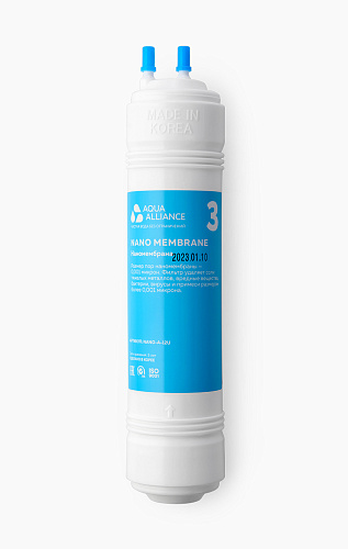 Фильтр Наномембрана Aquaalliance NANO-A-12U.Размер пор наномембраны - 0,001 микрон. Фильтр удаляет соли тяжелых металлов, вредные вещества, бактерии, вирусы и примеси размером более 0,001 микрона.