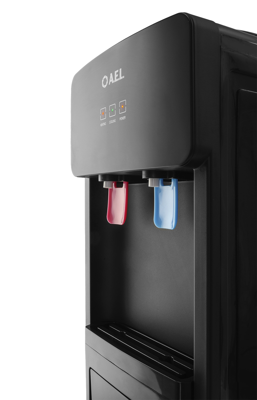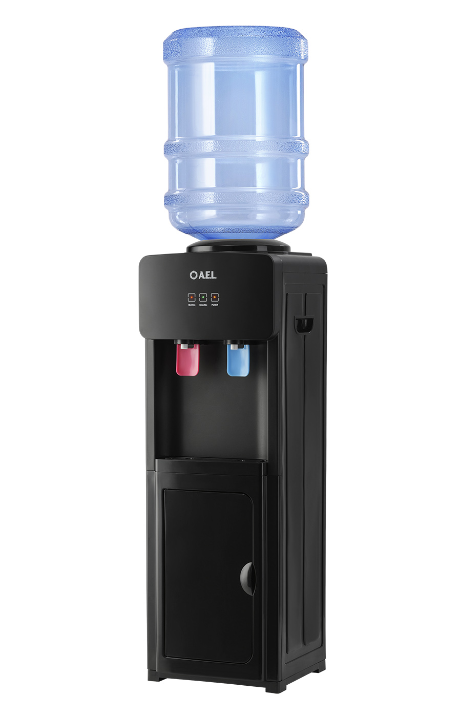 Кулер для воды LD-AEL-86с full black с электронным охлаждением с пластиковыми боковыми панелями. Корпус черного цвета, шкафчик, высота 795мм