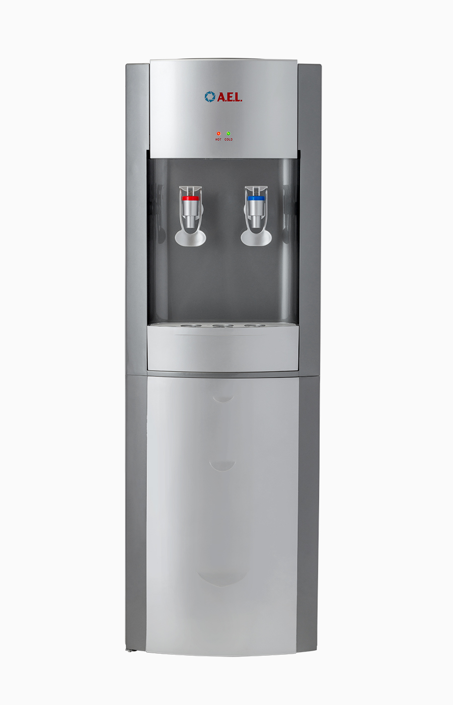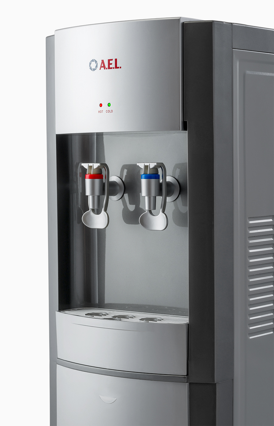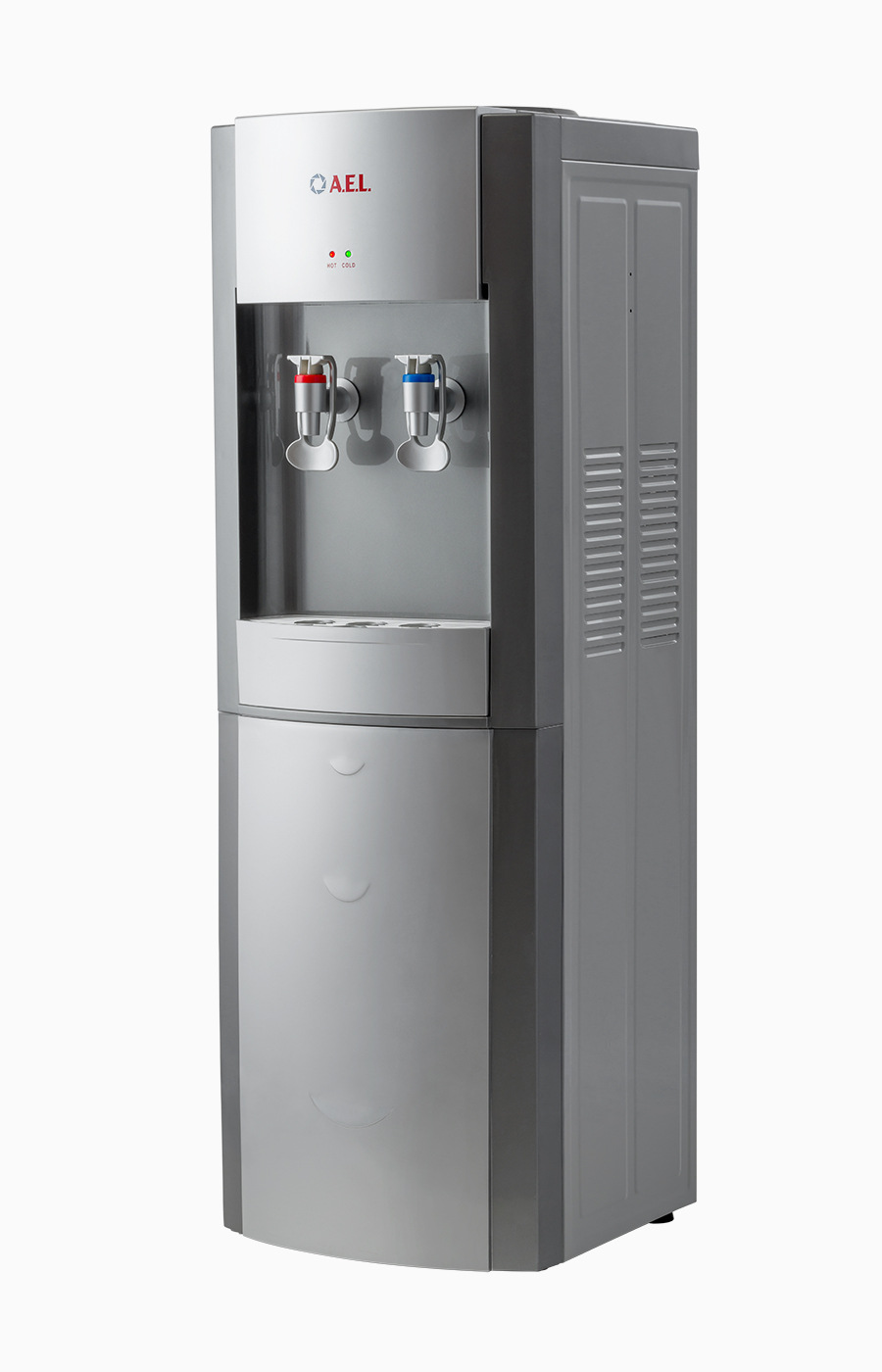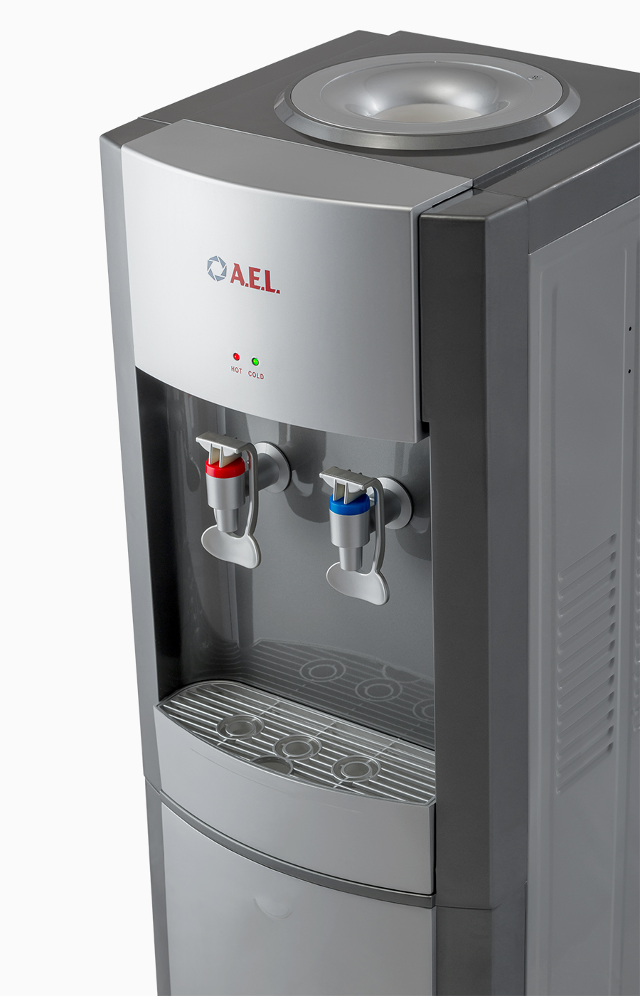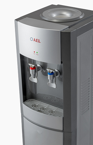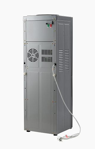 Бюджетный кулер с верхней загрузкой электронного охлаждения. Краники "нажим чашкой" с внутренней резьбой. Цвет: темно-серый с серебряными вставками. Боковые стенки выполнены из металла серебристого цвета. Кулер удобен для офисного использования.