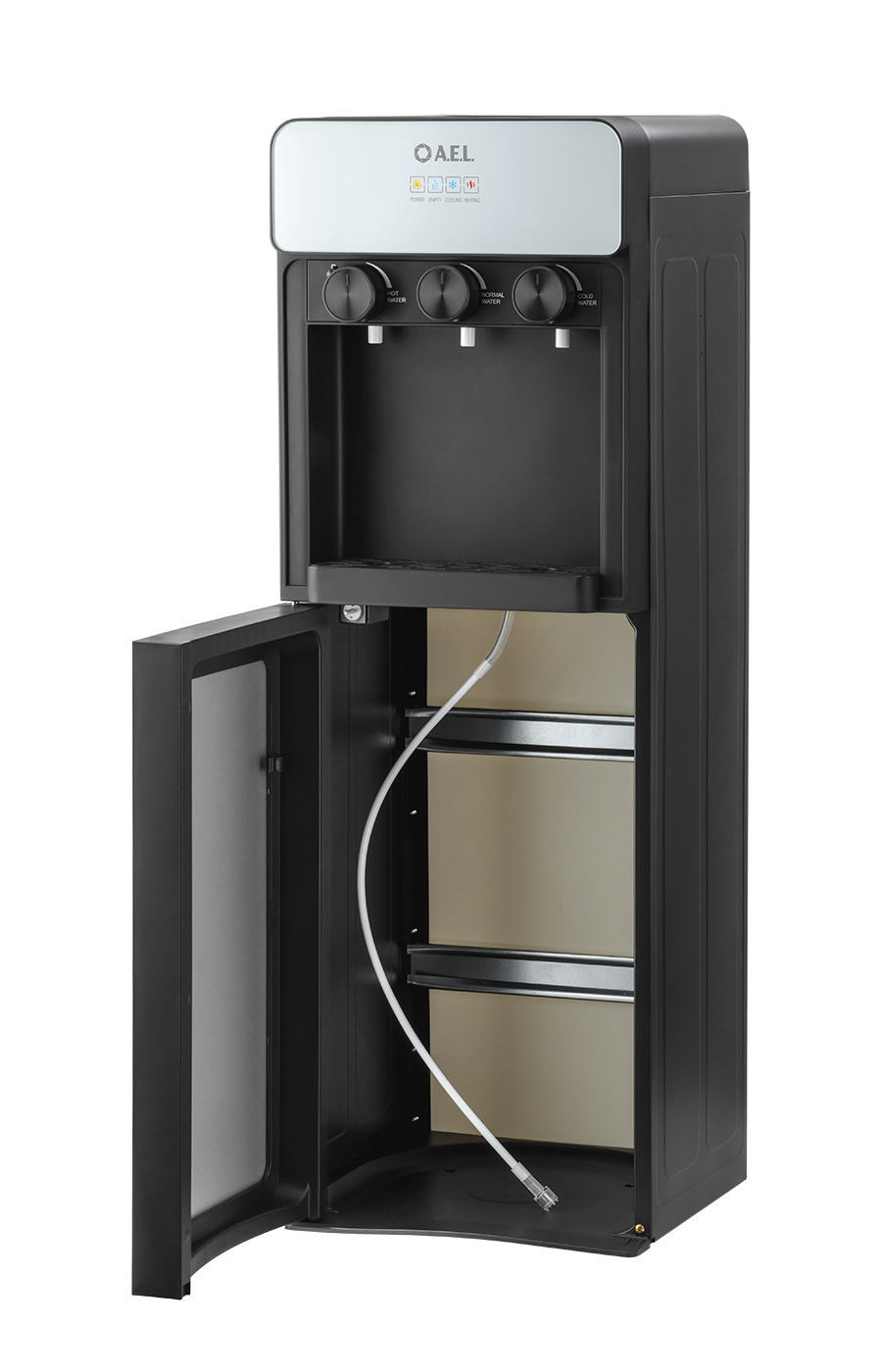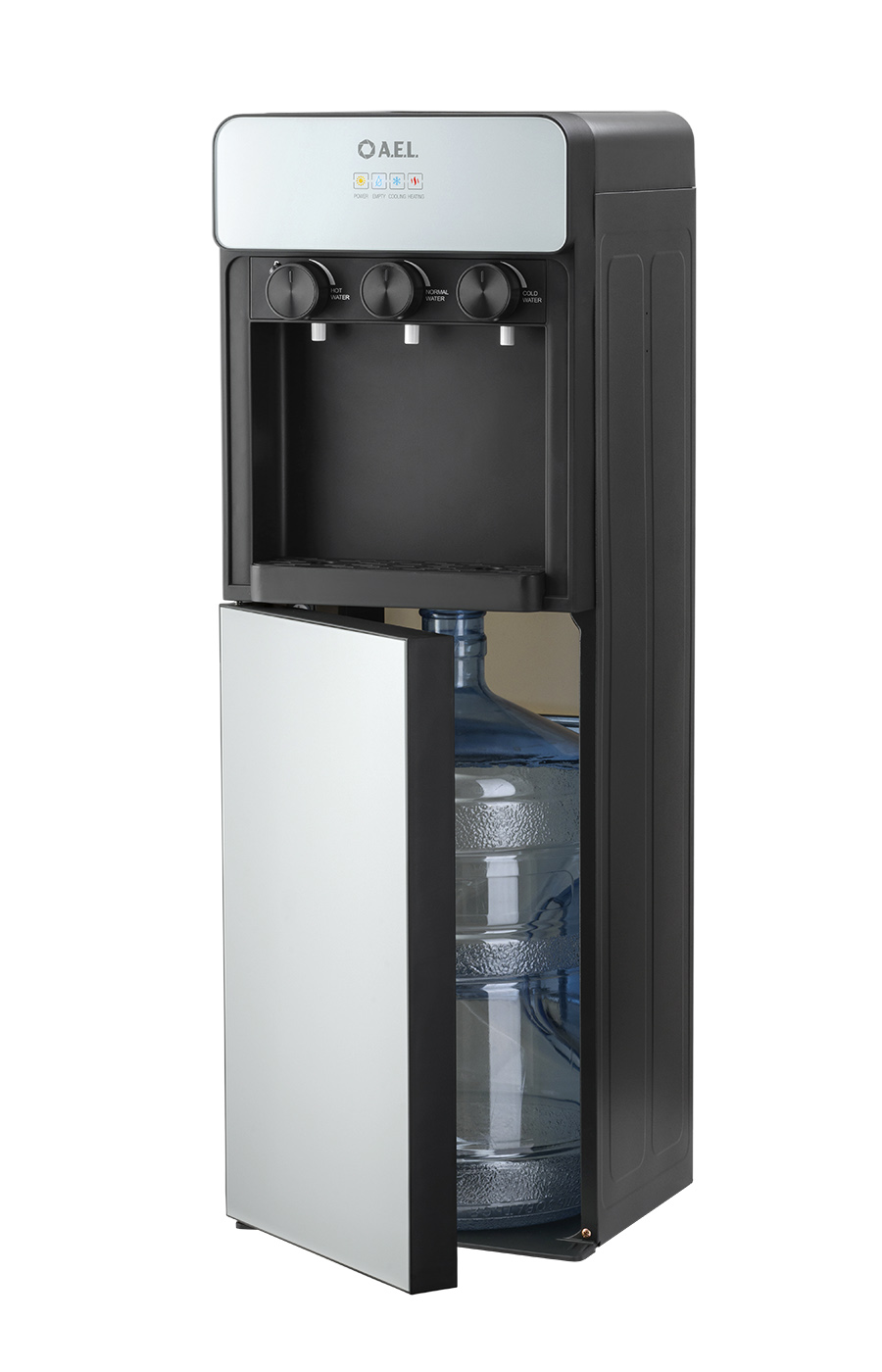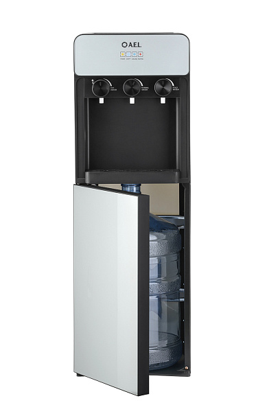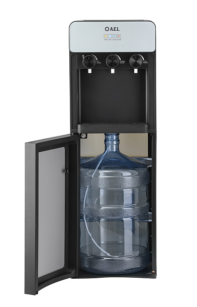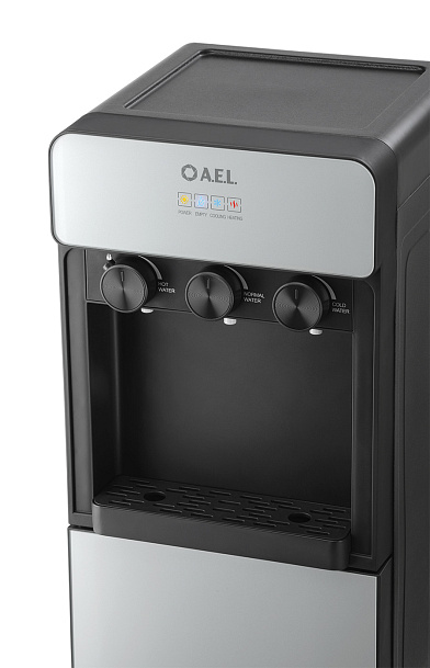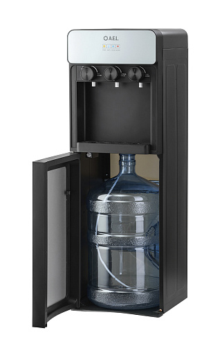 Кулер для воды LD-AEL-825a black/silver - напольный кулер с нижней загрузкой бутыли, с электронным охлаждением и поворотными кранами подачи воды. Корпус черного цвета с серебристыми вставками. Три крана подачи воды: горячей, холодной и комнатной температуры. На кране горячей воды располагается кнопка от случайного нажатия. В процессе эксплуатации аппарата в тот момент, когда вода в бутыли закончилась, на панели индикации загорится индикатор наличия воды в бутыли. Это символизирует о том, что необходимо заменить пустую бутыль. Рекомендованы следующие параметры бутыли 19л для данной модели - 270*270*500мм (пример Бутыль 19л. с ручкой (ЯЗН)).