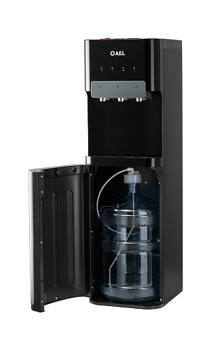 Кулер для воды LD-AEL-827a black с электронным охлаждением c нижней загрузкой бутыли, закрывающейся дверцей. Снабжен 3-мя клавишами для воды холодной, горячей и комнатной температуры. Защита от случайного нажатия на клавише горячей воды. В процессе эксплуатации аппарата в тот момент, когда вода в бутыли закончилась, на панели индикации загорится индикатор наличия воды в бутыли. Это символизирует о том, что необходимо заменить пустую бутыль. Цвет: черный глянец и дизайн с серой вставкой