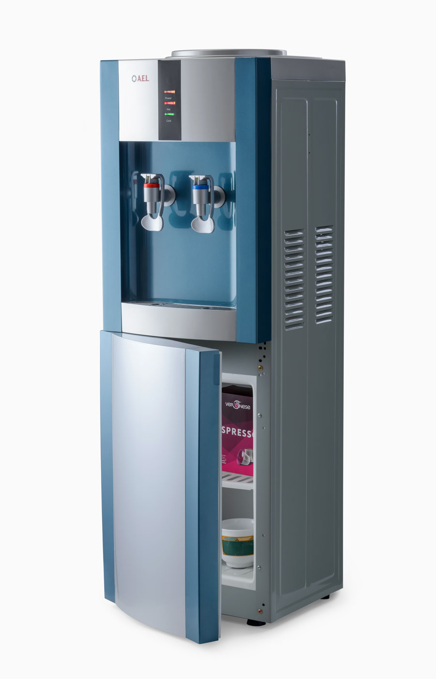 Новинка в ассортименте АЕЛ - недорогой напольный кулер для воды с верхней загрузкой бутыли в корпусе цвета маренго с серебристыми вставками. Аппарат имеет два удобных крана для подачи воды типа "нажим кружкой". Краны с внутренней резьбой для удобной замены в случае необходимости. Оснащен встроенным шкафчиком объемом 13 литров (140х230х325 мм). Кулер только с нагревом без охлаждения.