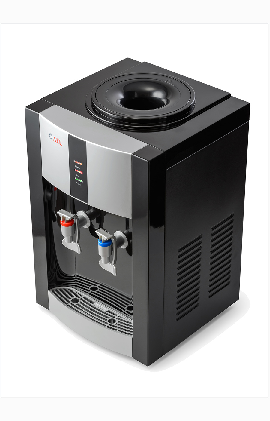 Настольный аппарат без охлаждения, только нагрев. Цвет: черный с серебряной вставкой. Краники "нажим чашкой".