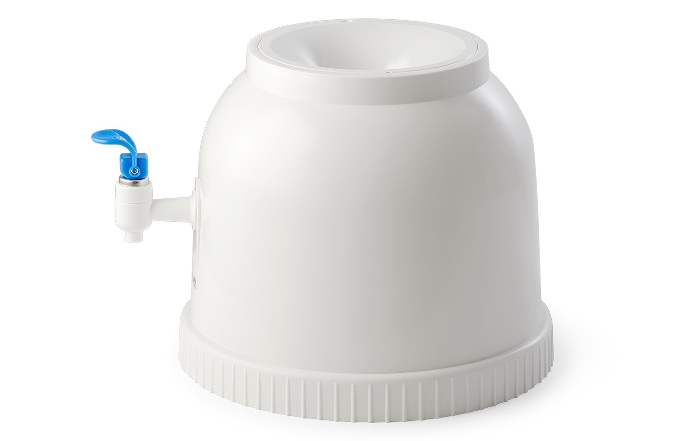 Диспенсер Turin для раздачи воды. Настольный, без нагрева и охлаждения. Цвет белый. Кран "нажим рукой" синего цвета. Упакован в цветную коробку.