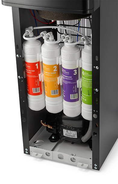 Пурифайер-проточный кулер для воды Aqua Alliance A60s-LC black c компрессорным охлаждением и с 4х UF-системой очистки. Модель комплектована удобными краниками нажим чашкой c защитой от случайного нажатия. Бак холодной воды 7л. Бак горячей воды 5л. Цвет: черный глянцевый корпус. Комплектация: кран врезки, трубка ¼ 3 метра, фильтры 12 U тип, инструкция. Сделано в Корее.