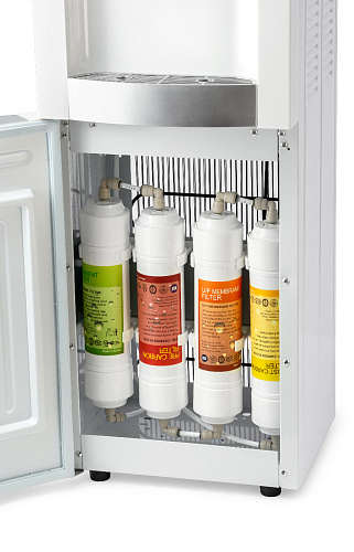 Представляем новинку в ассортименте AQUA ALLIANCE - напольный пурифайер компрессорного типа с 4х UF-системой очистки. Модель комплектована внешним нагревательным элементом и баком нагрева 1,2л, удобными краниками белого цвета нажим чашкой с внутренней резьбой. Цвет: белый корпус с серебрянными вставками, боковые панели белого цвета.